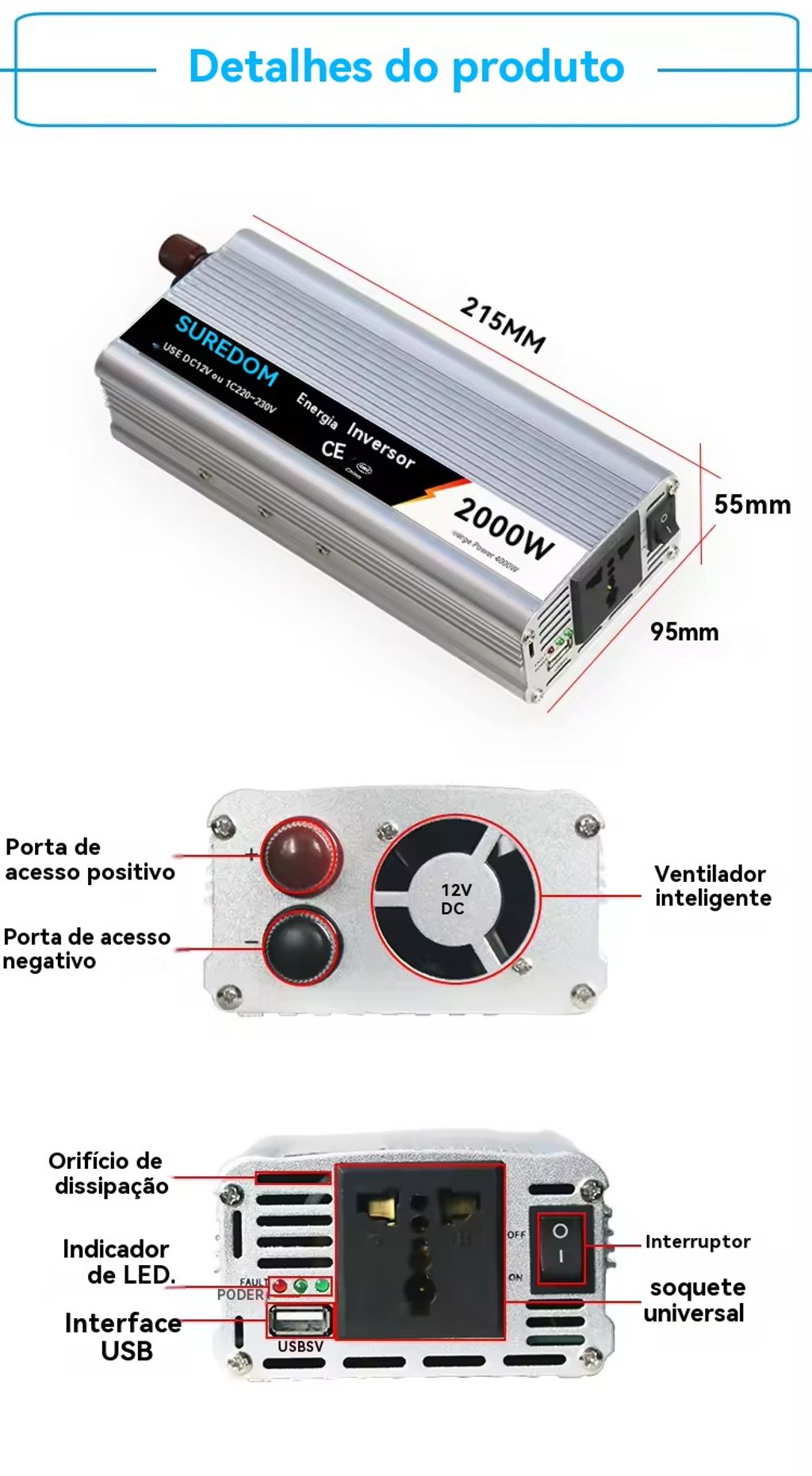 Transforma a energia de baterias (12V, comum em carros ou baterias de casa) em energia de 220V (tomada padrão de Angola) — pode ligar televisores, refrigeradores, celulares, luzes e outros aparelhos.