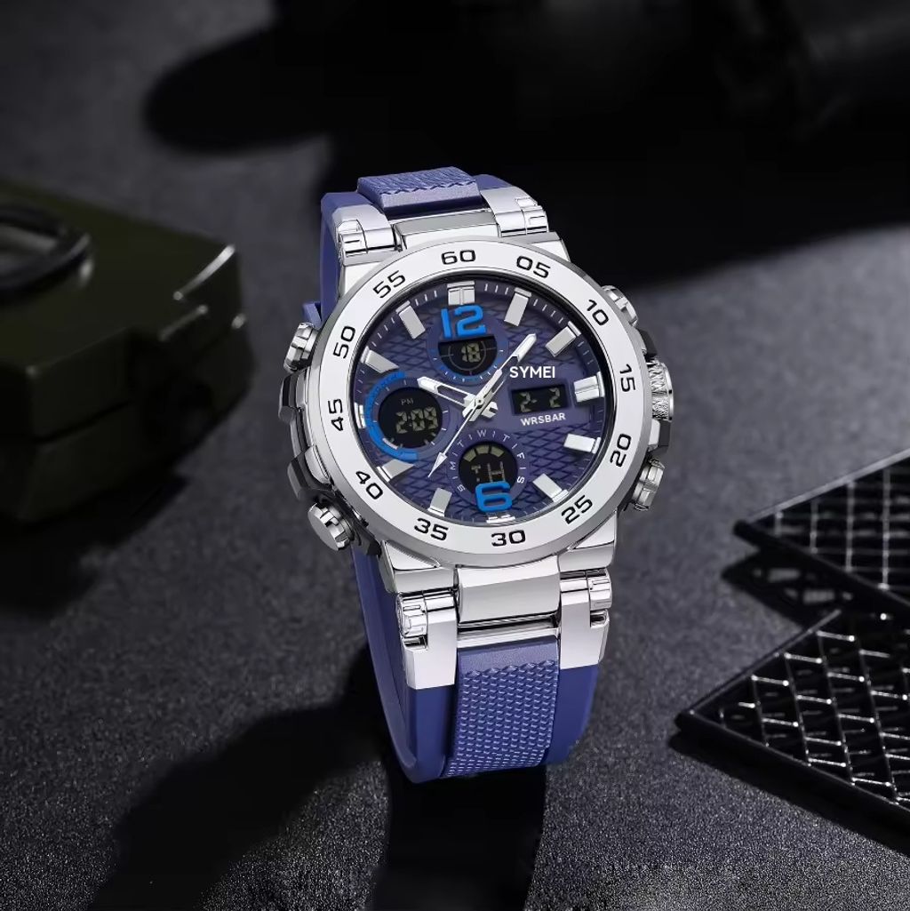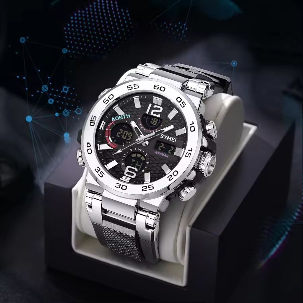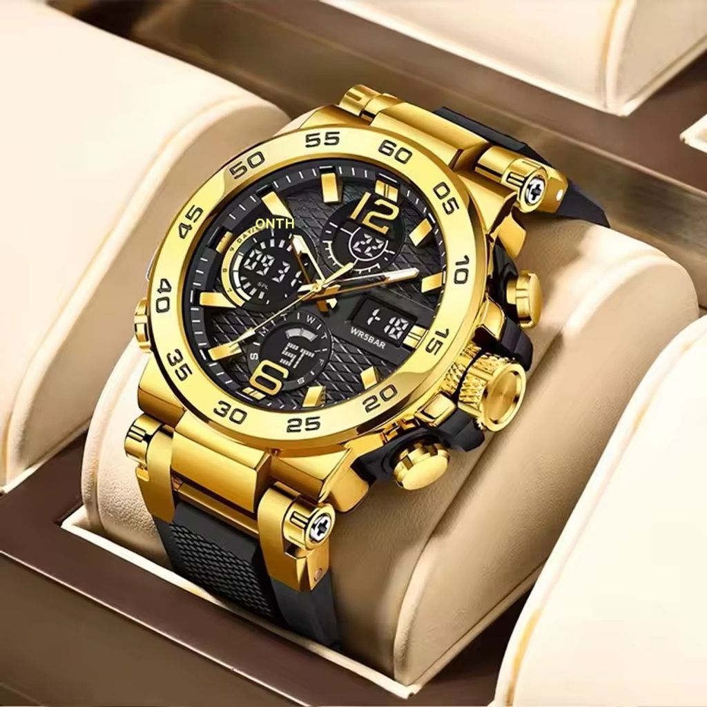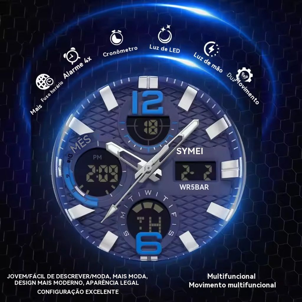Cronometro analógico alarme digital esporte homem relógio LED impermeável 50 bar borracha presente